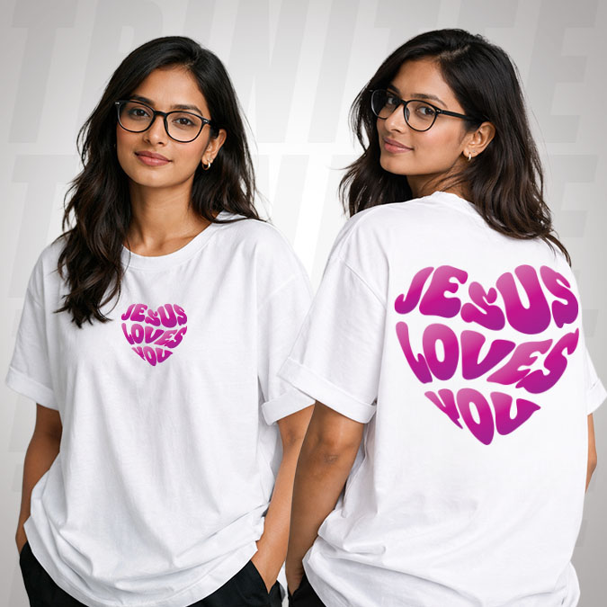 Designed to spread a message of love, hope, and faith, this tee reflects the heart of the Gospel — that Jesus loves each and every one of us. With clean typography and a modern comfortable fit, it’s perfect for everyday wear, church gatherings, or sharing your faith wherever you go.